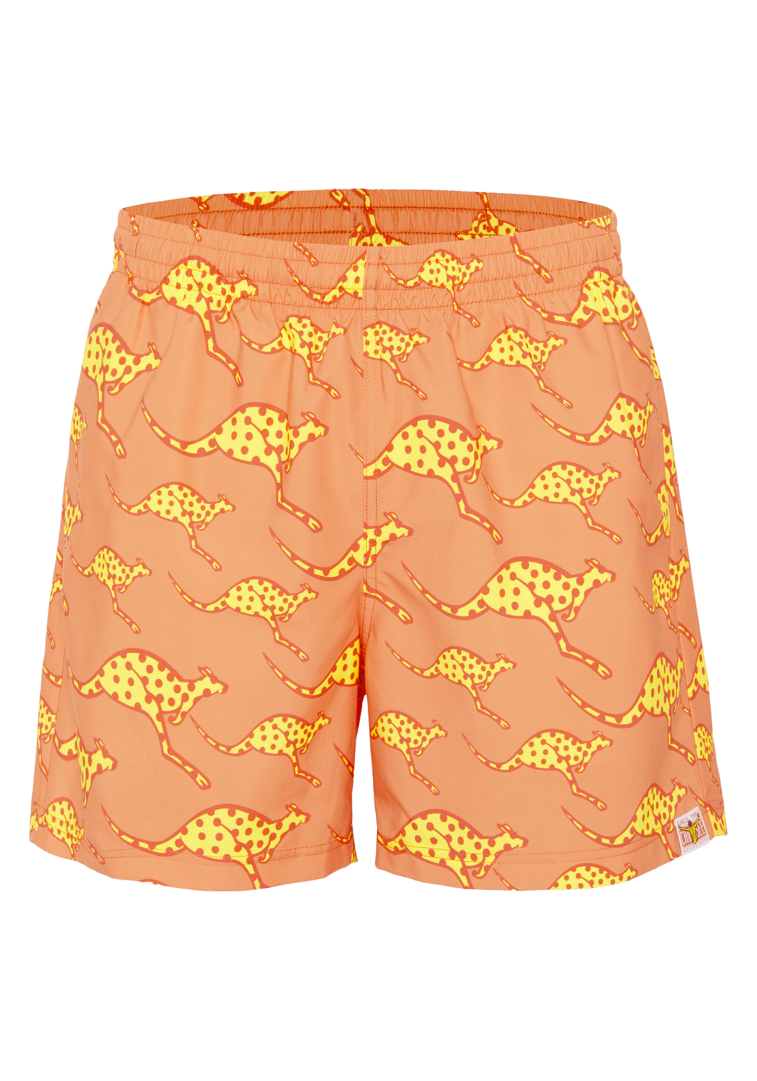 Alloverprint-Badehose mit Gummizug und seitlichen Taschen
